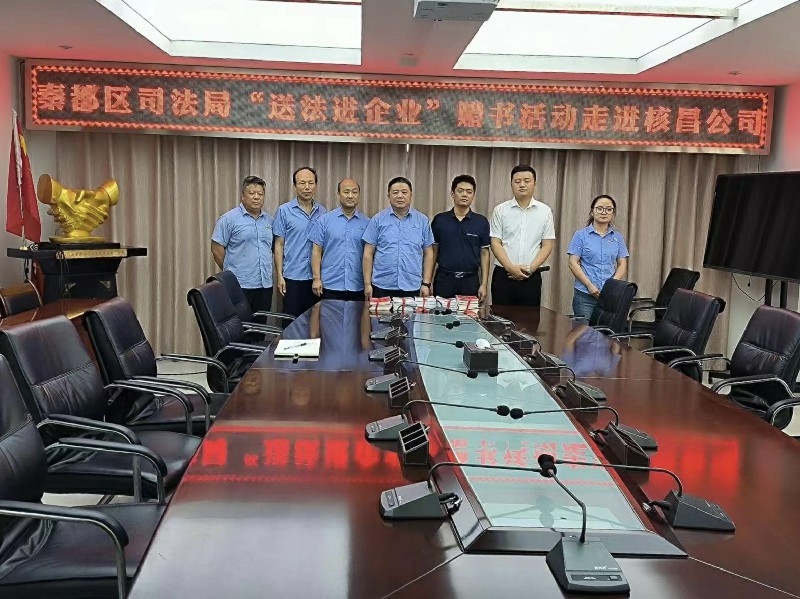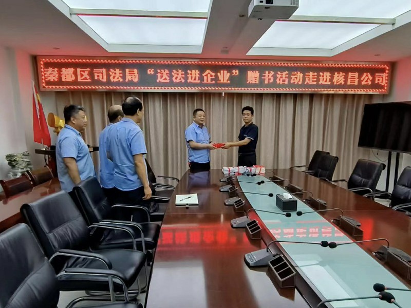 企業(yè)在市場(chǎng)風(fēng)浪中穩(wěn)健前行,離不開法治護(hù)航;員工在企業(yè)大家庭中建功立業(yè)、成才成長(zhǎng),離不開法治護(hù)佑。7月27日上午,秦都區(qū)司法局副局長(zhǎng)李強(qiáng)一行開展“送法進(jìn)企業(yè)”贈(zèng)書活動(dòng),為核昌公司提高企業(yè)防范和化解法律風(fēng)險(xiǎn)能力,以法治力量護(hù)航企業(yè)高質(zhì)量發(fā)展提供動(dòng)力。