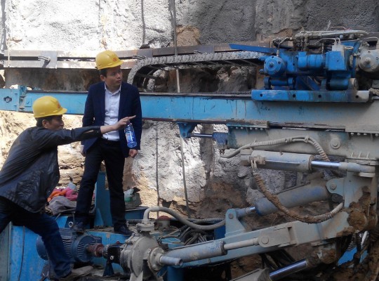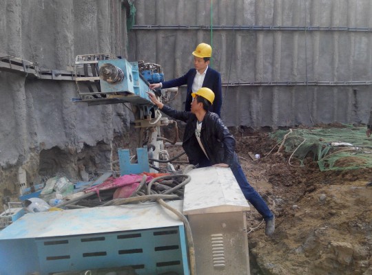 4月7日上午,公司總經(jīng)理王超宏在總經(jīng)理助理、綜合部部長劉彥仁的陪同下,親臨北京某房建施工現(xiàn)場,看望現(xiàn)場負(fù)責(zé)新產(chǎn)品HMD-7500全液壓錨固鉆機(jī)工業(yè)性試驗(yàn)的同志,并對鉆機(jī)的試驗(yàn)情況進(jìn)行了調(diào)研。