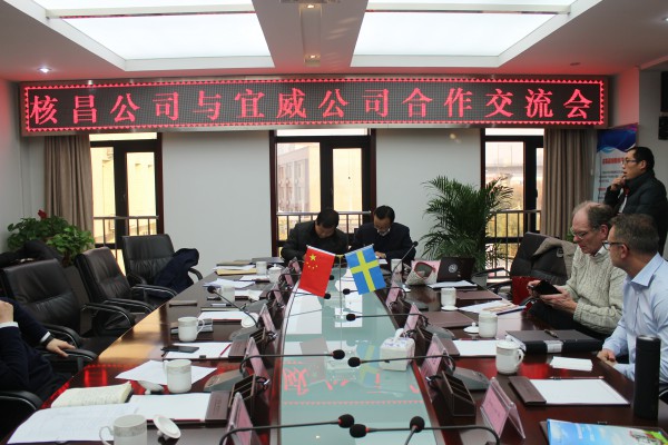 首先,宜威公司張聯庫、朗尼·埃里克森、尤納斯·阿格倫一行在公司領導班子的陪同下參觀了生產車間、辦公場所和職工食堂,使外方代表對公司環境做了初步了解。在隨后的合作交流會上,董事長王超宏介紹了公司歷史演變、人員結構、產業布局、未來發展方向等方面的情況,同時就與宜威公司的合作表明了態度。地源熱泵項目組組長張聯庫對與核昌公司的合作事宜作了敘述,隨后,雙方對合作的一些具體事項進行了商談,最后達成共識,簽署了合作意向書。
