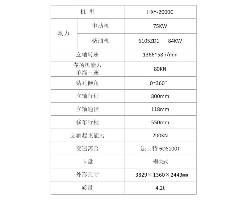HXY-2000型巖心鉆機除了適用于金剛石和硬質合金為主的巖心鉆探外,也可用于工程地質勘察、樁孔施工、淺層石油、天然氣、水文水井鉆進,以及大口徑基礎工程施工。該機結構合理,重量輕,鉆進能力強,性能穩定、可靠性好,標準化、通用性程度高。該機結構合理,給進行程大、扭矩大、用途廣泛、性能穩定、可靠性強。該機主要有以下特點: