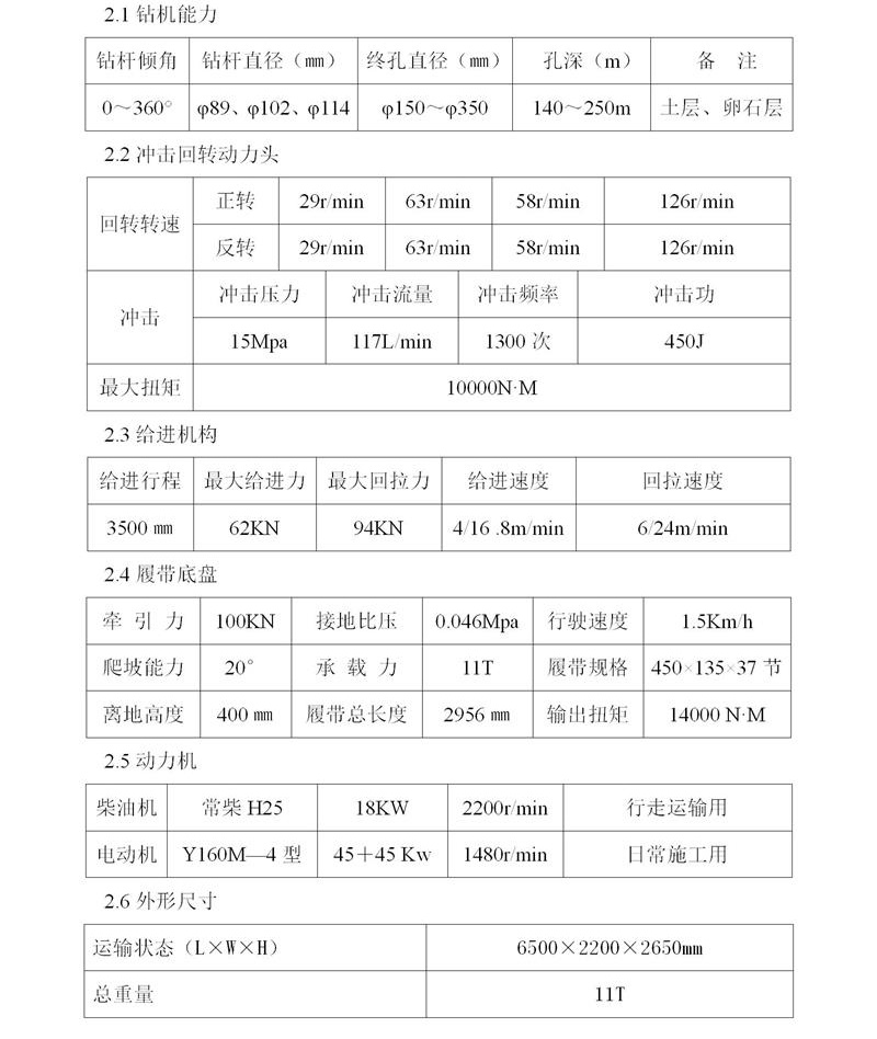 全液壓控制,機身結構堅固,設計理念先進,儀表監(jiān)控,操作靈活方便,充分保證設備的實用性能。設備采用電動機作為主動力源,并且備有一個18Kw的小柴油機作為無電源時行走及搬運上下車時使用。電機總功率為90KW,其中用于用于動力頭回轉的有65Kw,所以鉆機回轉扭矩比同類型的要大將近一倍,沖擊力和提升力都非常強大,工作效率高,可一機多用,以邊坡錨固工程施工為主,也可以廣泛用于建筑深基坑、地鐵、隧道、鐵路、公路、地質災害治理的錨固施工和小型樁的施工。