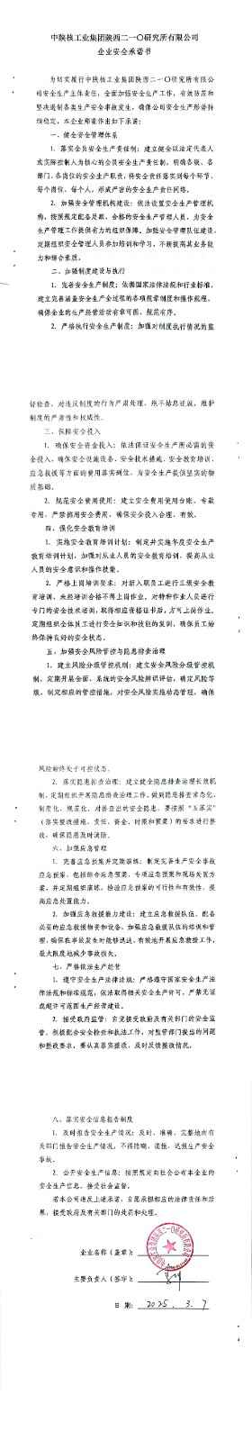 中陜核工業(yè)集團陜西二一〇研究所有限公司企業(yè)安全承諾書